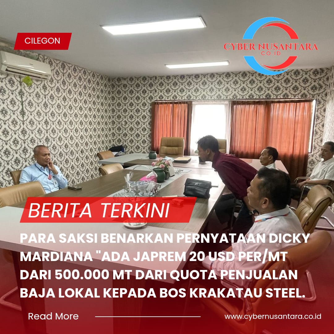 Saat dimintai klarifikasi para saksi membenarkan adanya pernyataan Dicky Mardiana yang jelas menyatakan bahwa “Ada Jatah Preman” (Japrem) sebesar 20 USD Per/MT di kalikan 500.000 MT Per/tahun kepada Bos PT.Krakatau Steel (Persero) Tbk dari quota penjualan lokal baja PT.Krakatau Posco melalui PT. Krakatau Steel (Persero) Tbk (KRAS).